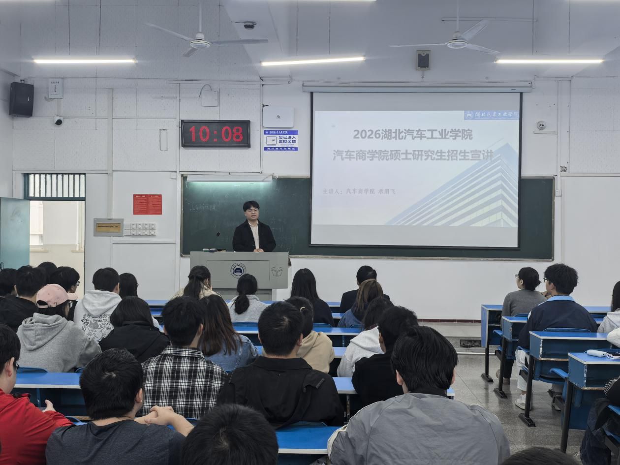为引导2026届毕业生明确发展方向,树立正确的就业观,了解当前就业形势,10月11日上午,汽车商学院在2304教室举行2026届毕业生考研就业动员大会。学院副院长何波、专任教师承朋飞和张康辉、学工办主任罗珍、团委书记冯洁茹、就业工作辅导员陈欢及全体2026 届毕业生参会。