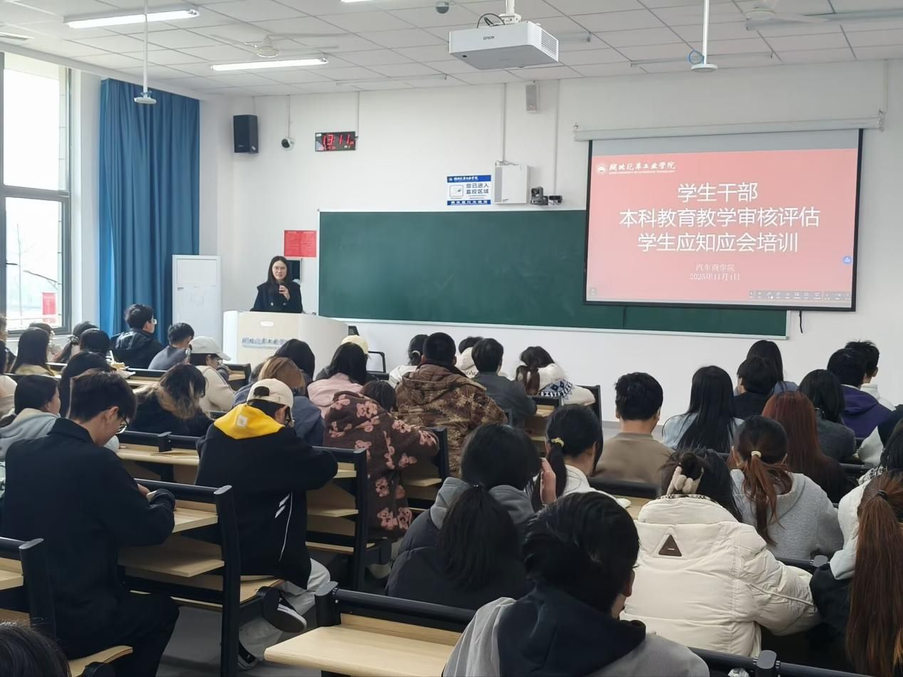 为强化学生干部责任意识、明确迎评工作要求,凝聚全员迎评合力,10月29日,汽车商学院在 8103 教室开展本科教育教学审核评估学生应知应会培训。学院团委书记冯洁茹、团委副书记赵氏璇及全体学生干部参会。