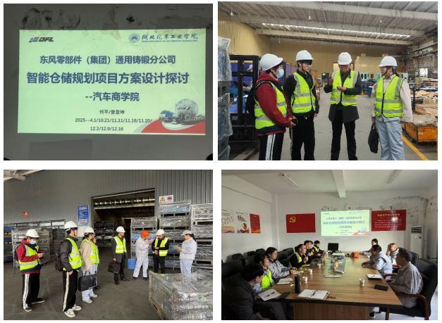 自东风零部件集团通用铸锻分公司《智能仓储规划项目》启动以来,饶斌班学子在企业导师何平、曾显坤,班主任陈赛男的联合指导下,建立“线上+线下” 联动研讨机制,围绕标准化容器需求测算与设计、仓储业务边界确定、成品仓库布局设计及仓储信息系统对接四大核心议题稳步推进。