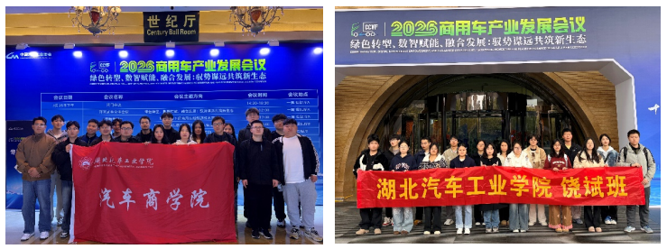 2026 年 3 月 25 日至 27 日,2026 中国商用车论坛在十堰圆满举办。湖北汽车工业学院汽车商学院积极组织骨干教师参会作主旨报告,同时带领研究生与饶斌班学生现场研学,以学术赋能行业发展,以实践拓宽育人路径,彰显学院产教融合、科教融汇的办学特色。