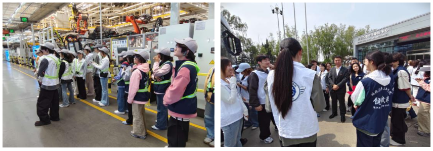 4月24日,实习进入第二天,全体师生乘坐大巴车共同前往福田戴姆勒欧曼汽车有限公司生产车间开展实践学习。同学们在专业人员的讲解下,通过主题宣传片、品牌讲解,深入了解欧曼品牌发展理念、前沿技术及核心产品优势,近距离观摩体验高端重卡实车与智能配置,直观认识商用车产业创新成果。随后,师生穿戴好安全防护装备,先后走进了冲压、车身、总装车间,实地观摩重卡全流程制造工艺,感受现代化汽车生产线的高效与规范。参观结束后,同学们结合专业所学与讲解员深入交流,进一步加深对商用车产业与企业运营的理解。