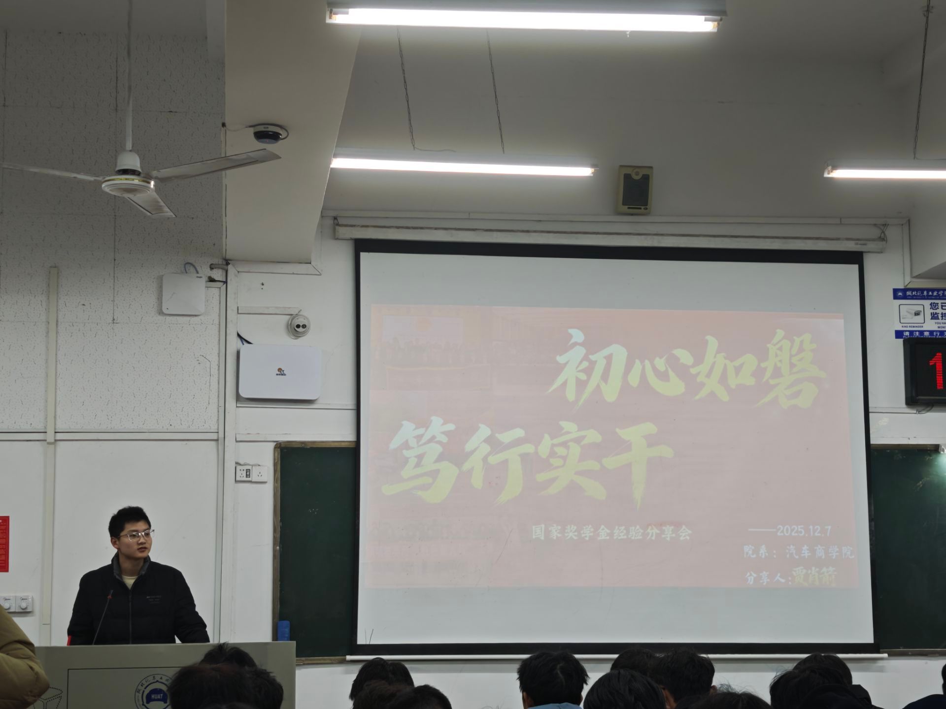 为充分发挥优秀学生的榜样示范作用,推动学院学风建设,12月7日,汽车商学院依托晚点名时段,面向2025级全体新生举办了国家奖学金、国家励志奖学金优秀获奖者经验交流宣讲会。本次活动以“朋辈引领、互助成长”为主题,通过分专业、分班级的精细化组织,实现了全覆盖、深交流的育人效果。