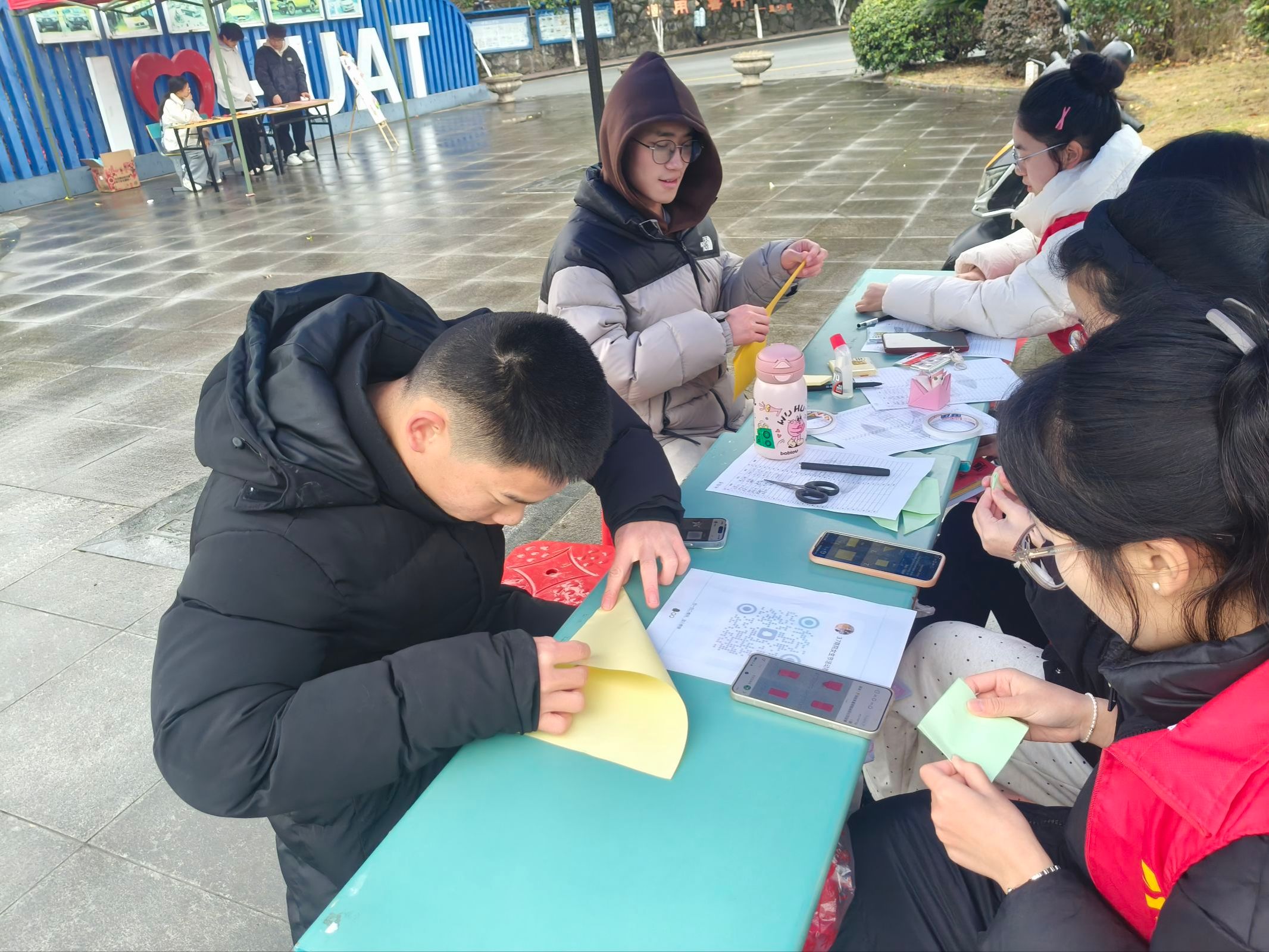 活动现场设置“爱心花朵折纸”“温暖回音板”两大互动区域,将动手创作与心意表达巧妙融合,让同学们在轻松氛围中感受节日温度。在“爱心花朵折纸区”,志愿者们化身“手工导师”,从选纸、折痕到塑形,细致讲解玫瑰、康乃馨、郁金香等花卉的折纸技巧,手把手指导参与者完成每一步操作。彩纸在指尖翻飞、折叠、定型,普通卡纸逐渐化作一束束精致花束,每一片花瓣都凝结着对女生们的真诚祝福——“愿你如花般绽放,永远向阳而生”。“温暖回音板”前同样人气高涨。同学们手持彩色便利贴,将对自我的鼓励、对身边女性的暖心告白、对青春的无限期许凝于笔端。